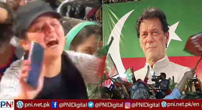 عمران خان کے خطاب کے لیے سٹیج پر آنے پر یہ لڑکی زار و قطار رو رہی ہے اور “عمران خان ، عمران خان ” کی آوازیں لگاتی رہی ، رپورٹ کے مطابق وہ عمران خان سے ایک بار بات کرنے کی درخواست کر رہی ہے۔