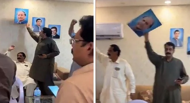 راولپنڈی، اسلام آبا د( پی این آئی)مسلم لیگ (ق) کے سربراہ چودھری شجاعت حسین کی جانب سے وزیر اعلیٰ کے انتخاب میں لکھے گئے خط کے بعد راولپنڈی کے عہدیدران و کارکنان نے پارٹی سیکرٹریٹ میں نصب چودھری شجاعت حسین کی تصاویر اتار دیں۔نجی ٹی وی کے مطابق مسلم لیگ (ق)راولپنڈی کے عہدیدران نے پارٹی سیکرٹریٹ راولپنڈی میں لگی چوہدری شجاعت حسین کی تصاویر احتجاجاًاتار دیں اور شدید احتجاج کیا۔