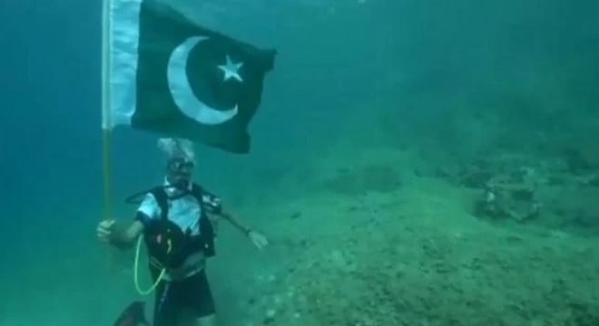 اسلام آباد (این این آئی)یورپ میں مقیم پاکستانی نژاد نوجوان نے پاکستان کے 75 ویں یوم آزادی کی مناسبت سے یونان کے گہرے سمندر میں 75 منٹ تک قومی پرچم کو لہرایا۔نوجوان نے وطن سے محبت کا اظہار اور پاکستان کی ڈائمنڈ جوبلی پرکچھ منفرد کرنے کی ٹھانی اور سب کی توجہ سمیٹ لی۔نوجوان کی ویڈیو سوشل میڈیا پر بھی وائر ل ہوگئی جس میں دیکھا جاسکتا ہے یہ نوجوان گہرے سمندر میں قومی پرچم تھامے ہوئے ہے۔نوجوان نے سمندر میں جانے سے پہلے تمام حفاظتی اقدامات کیے اس موقع پر انہوںنے کہا کہ اس کا مقصد پوری دنیا کو یہ بتانا ہے کہ پاکستان ایک پر امن ملک ہے اور ملک کی خاطر جان قربان کرنے والے شہیدوں کو خراج عقیدت بھی پیش کرنا ہے۔
