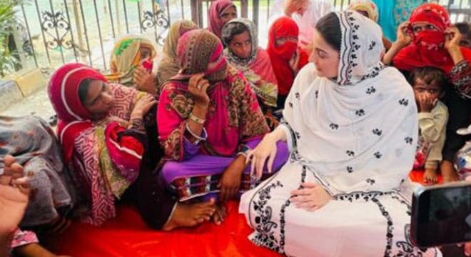 اسلام آباد (پی این آئی)مسلم لیگ (ن )کی نائب صدر مریم نواز سیلاب متاثرین سے خطاب کے دوران گر گئیں۔راجن پور میں زیادہ متاثرین جمع ہونے کی وجہ سے مریم نواز چھوٹی میز پر چڑھ گئیں، دوران تقریر میز ٹوٹ جانے سے وہ لڑ کھڑا گئیں۔مریم نواز نے اسی جگہ کھڑے ہو کر خطاب مکمل کیا۔یاد رہے کہ مریم نواز خصوصی طیارے سے ڈی جی خان ایئرپورٹ پہنچیں اور وہاں سے راجن پور گئی تھیں