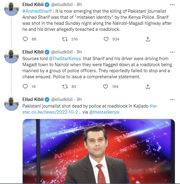 ارشد شریف کے قتل میں نیا موڑ آگیا، کینیا کے صحافی نے پولیس کے بیانات کا پوسٹ مارٹم کر دیا، کہانی کچھ اور ہی نکلی