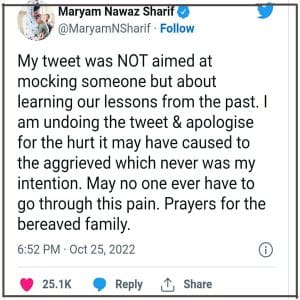 مریم نواز نے معافی مانگ لی، ارشد شریف کے حوالے سے نامناسب ٹویٹ ڈیلیٹ کر دیا