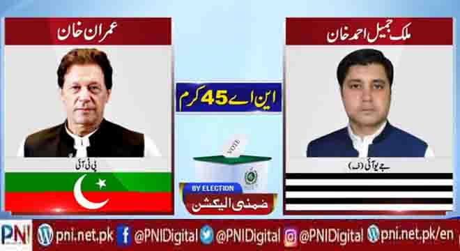 بتایا گیا ہے کہ اس حلقے پر چیئرمین پی ٹی آئی عمران خان اور پی ڈی ایم کے امید وار جمیل خان سمیت 16 امیدوار میدان میں ہیں۔ لیکن اصل مقابلہ عمران خان اور جمیل خان کے درمیان ہے۔ ضلع کرم کے حلقہ این اے 45 کی نشست پی ٹی آئی کے ایم این اے ملک فخر زمان کے مستعفی ہونے سے خالی ہوئی تھی۔ ڈسٹرکٹ الیکشن کمشنر عبد الرؤف خان کے مطابق اس حلقے میں رجسٹرڈ ووٹرز کی تعداد 1 لاکھ 98 ہزار 618 ہے۔حلقے کے 143 پولنگ اسٹیشنز میں سے 24 انتہائی حساس اور 119 کو حساس قرار دیا گیا ہے۔۔۔۔۔