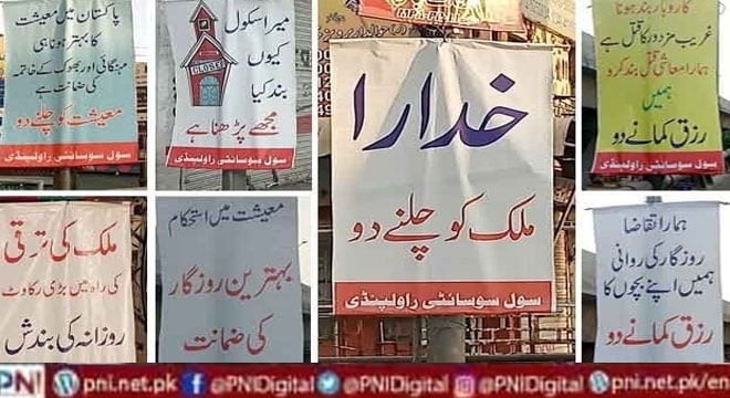 سول سوسائٹی نے بینرز پر نعروں کے ذریعے مظاہروں اور دھرنوں کو ختم کرنے کا مطالبہ کیا ہے۔