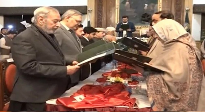 پشاور (پی این آئی)خیبرپختونخوا کی نگران کابینہ میں ارب پتی خاندانوں سے تعلق رکھنے والی شخصیات کو بھی شامل کیا گیا ہے، بیشتر وزرا کا تعلق جے یو آئی سے ہے ۔خیبر پختونخوا کی نگران کابینہ نے حلف اٹھا لیا، کابینہ میں 15 وزرا کو شامل کیا گیا ،کے پی کی نگران کابینہ میں مالدارافراد بھی شامل ہیں،ضلع خیبر سے تعلق رکھنے والے جے یو آئی کے منظور آفریدی کا شمار مولانا فضل الرحمان کے انتہائی قریبی رفقا میں ہوتا ہے ۔ارب پتی منظور آفریدی کے مختلف کاروبار ہیں
