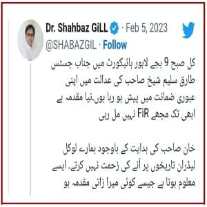 لاہور میں پولیس نے شہباز گل پر بغاوت پر اکسانے کا مقدمہ درج کیا تھا۔ شہباز گل کا کہنا ہے کہ کل صبح 9 بجے لاہور ہائیکورٹ میں جسٹس طارق سلیم شیخ صاحب کی عدالت میں اپنی عبوری ضمانت میں پیش ہو رہا ہوں۔