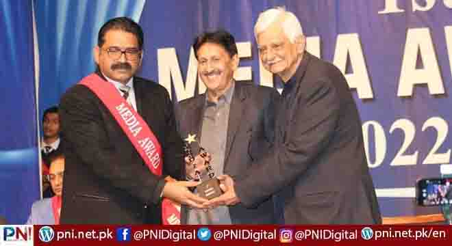 راولپنڈی (پی این آئی)راولپنڈی پنجاب آرٹس کونسل میں منعقدہ ایوارڈ 2022ء 23 شو میں سابق صدر راولپنڈی اسلام آباد یونین آف جرنلسٹس عامر سجاد سید کو سینیٹر تاج حیدر صحافتی خدمات پر فرسٹ میڈیا ایوارڈ دے رہے ہیں۔