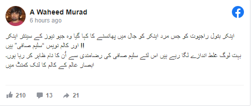 تاہم صحافی وحید مرا نےایک ٹویٹ میں بتا دیا ہے کہ وہ صحافی سلیم صافی ہیں۔