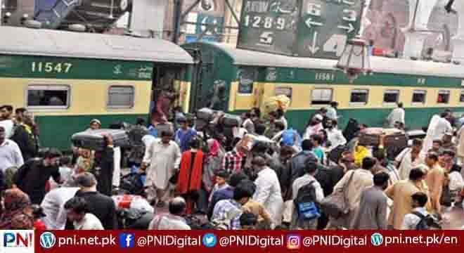ریلوے حکام کے مطابق وزیر ریلوے خواجہ سعد رفیق کی ہدایت پر مسافروں کی سہولت اور عید پر سفر کرنے والوں کے رش کے پیش نظر سپیشل ٹرینیں چلائی جا رہی ہیں، مسافروں کے رش کے باعث پہلے سے چلنے والی ٹرینوں کے ساتھ اضافی کوچز بھی لگائی جائیں گی۔حکام نے ورکشاپس ڈویژن کو سپیشل ٹرینوں کے لیے اضافی بوگیاں فراہم کرنے کی ہدایت کر دی۔