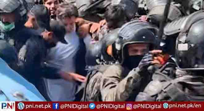 اسلام آباد (پی این آئی) چیئرمین پی ٹی آئی عمران خان کو گرفتار کر لیا گیا۔ رینجرز نے سابق وزیراعظم کو حراست میں لیا۔ عمران خان کو اسلام آباد ہائیکورٹ احاطے سے گرفتار کیا گیا۔ نیب نے القادر ٹرسٹ کیس میں سابق وزیراعظم کو گرفتار کیا،عمران خان کی گرفتاری کے دوران وکلا اور پولیس میں ہاتھا پائی بھی ہوئی۔