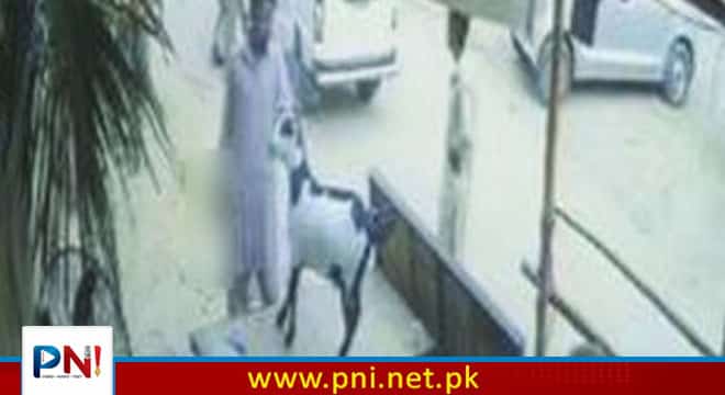 ملزمان 2 بکرے گاڑی میں ڈال کر لے گئے، خوش قسمتی سے وہیں بندھا ہوا دنبہ لکڑی کے بچھے ہوئے تخت کے نیچے بیٹھے ہونے کی وجہ سے بچ جاتا ہے۔سی سی ٹی وی فوٹیج میں دونوں مسلح ملزمان کے چہرے واضح نظر آ رہے ہیں۔