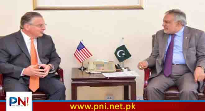 اسحاق ڈار نے امریکی سفیر ڈونلڈ بلوم کو معاشی استحکام سے متعلق حکومت کی اقتصادی پالیسیوں اور ترجیحات کے بارے میں بتایا، امریکی سفیر ڈونلڈ بلوم نے معاشی استحکام کے لیے حکومتِ پاکستان کی پالیسیوں اور پروگرامز پر اعتماد کا اظہار کیا۔امریکی سفیر نے دو طرفہ اقتصادی، سرمایہ کاری اور تجارتی تعلقات بڑھانے کے لیے حمایت کا یقین بھی دلایا، ملاقات میں مشترکہ دلچسپی کے امور اور دونوں ممالک کے موجودہ دو طرفہ تعلقات پر گفتگو بھی ہوئی۔وزیرِ خزانہ نے امریکی سفیر ڈونلڈ بلوم سے گفتگو میں امریکہ کی حمایت اور تعاون کو سراہا، اسحاق ڈار نے امریکہ سے دو طرفہ اقتصادی اور تجارتی تعلقات مزید گہرے ہونے کی خواہش کا اعادہ بھی کیا۔