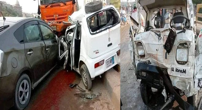ڈمپر کی تیز رفتار ٹکر سے گاڑیاں تباہ ہوگئیں، ریسکیو ذرائع کے مطابق حادثے کے بعد جاں بحق شخص اور زخمیوں کو اسپتال منتقل کیا گیا۔ریسکیو اہلکاروں اور قریب موجود افراد نے امدادی کارروائیاں انجام دیں۔ واضح رہے کہ اس مقام پر کچھ دن پہلے پل گر گیا تھا۔ نئے پل کی تعمیر کی وجہ سے ٹریفک ون وے چل رہی تھی۔ اور اکثر گاڑیوں کی میلوں لمبی لائنیں لگی رہتی ہیں