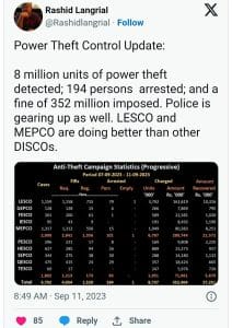 ایک پاور ڈویژن کا کہنا تھا کہ بجلی چوری کے ضمن میں ایک کروڑ 10 لاکھ روپے وصول ہوچکے ہیں، بجلی چوری کے الزام میں 21 افراد کو گرفتار اور 16 کروڑ 40 لاکھ روپے کا جرمانہ عائد کیا ہے۔۔۔۔