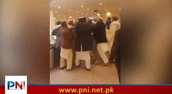 مولانا فضل الرحمان افغان حکومت کی دعوت پر دورے کے بعد آج کابل سے واپس اسلام آباد پہنچے۔اسلام آباد ائیرپورٹ پر آمد پر چند نوجوانوں نےسربراہ جے یو آئی کے خلاف نعرے لگائے۔ جے یوآئی کارکنان نے نعرے لگانے والے ایک نوجوان کوپکڑلیا اور باقی بھاگ گئے۔سوشل میڈیا پر زیر گردش ویڈیو میں دیکھا جاسکتا ہے کہ جے یو آئی کارکنان نے نوجوان کو تھپڑ مارے۔رہنما جے یوآئی عبدالمجید ہزاروی کا کہنا ہے کہ جے یو آئی کارکنان نے معافی مانگنے پر نوجوان کو چھوڑ دیا۔