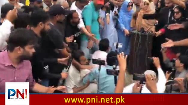 اڈیالا جیل کے باہر بانی تحریک انصاف عمران خان کی بہن علیمہ خان کی میڈیا سے گفتگو کے دوران صورتحال کشیدہ ہوگئی، جب صحافیوں کے سوالات پر پی ٹی آئی کارکنان نے ان کے ساتھ ہاتھا پائی اور گالم گلوچ شروع کردی۔
