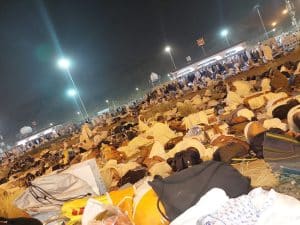 غروب آفتاب کے بعد عرفات کے میدان سے ہماری واپسی ہوئی رات مزدلفہ میں جاگ کر گزاری وہاں بھی ہمیں عبادات میں کسی طرح کی دشواری کا سامنا نہ کرنا پڑا۔ ۔میدان سجا ہوا تھا ہر طرف حجاج عبادت کرتے ہوئے نظر آرہے تھے۔