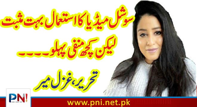 سوشل میڈیا ایک ایسا پلیٹ فارم ہے جس کی وجہ سے سب ایک دوسرے کو نہ ہی صرف دیکھائی دیتے ہیں بلکہ مختلف ممالک کے لوگ ایک دوسرے کے قریب بھی ہو گئے ہیں،اگر سوشل میڈیا کو ذہانت سے استعمال کیا جا ئے تو اپنے ٹیلنٹ کے لیے اور بزنس مارکیٹنگ کیلئے بہت مثبت ہے،لیکن اس کے بہت سے منفی پہلو ہیں جنھیں ہمیں ذہین میں رکھنا ضروری بھی ہے۔