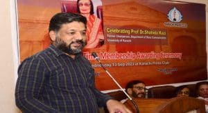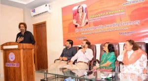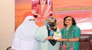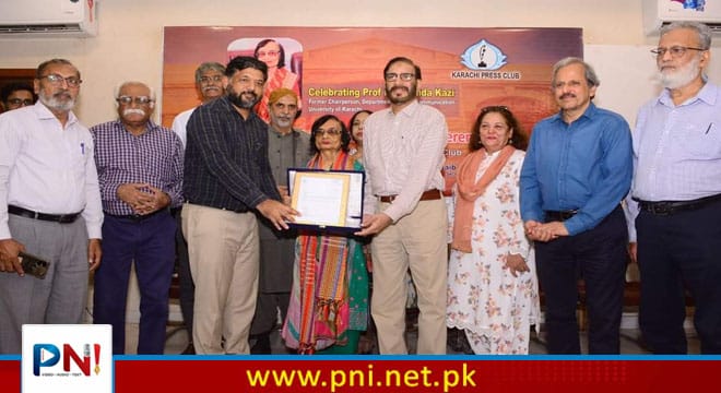 1963 میں شعبہ ابلاغ عامہ جامعہ کراچی کی پہلی طالبہ، روزنامہ ڈان کی پہلی خاتون رپورٹر، پی ٹی وی کی پہلی نیوز ایڈیٹر، شعبہ ابلاغ عامہ کی سابق سربراہ اور صحافت کی دنیا میں نمایاں مقام حاصل کرنے والے سینکڑوں شاگردوں کی ہر دلعزیز استاد پروفیسر ڈاکٹر شاہدہ قاضی کو کراچی پریس کلب کی گورننگ باڈی کی جانب سے ان کی تعلیمی خدمات کے اعتراف میں کراچی پریس کلب کی تاحیات ممبر شپ دینے کی پروقار تقریب