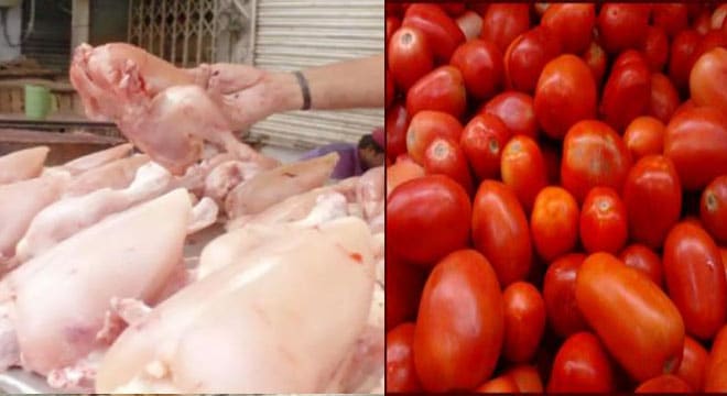 فیصل آباد (آئی این پی)فیصل آباد میں لال ٹماٹر مزید لا ل ہو گیا ریٹ250کلو تک جا پہنچا ، غریب کا سستا پروٹین برائلر مرغی ٹرپل سینچری کراس کر گئی تفصیل کے مطا بق سبز مصالہ جات عام کی پہنچ سے دور ہو نے لگے لال ٹماٹر مزید لال ہو گیا ریٹ250روپے کلو تک جس پہنچا ادرک 240روپے کلوسبز دھنیا90روپے کلواور سبز مرچ۱120روکلو فرو کت ہو نے لگی مارکیٹ میں غریب کا سستا پروٹین برا ئلر مر غی بھی ٹرپل سینچری کراس کر گیا