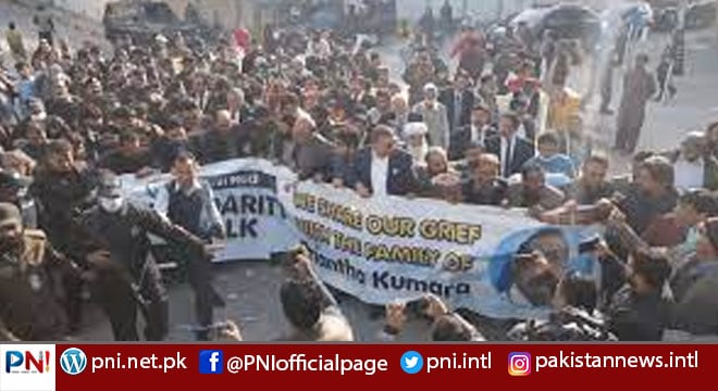 سیالکوٹ (آئی این پی) پریانتھا کمارا کو خراج تحسین پیش کرنے کے لئے ریلی،معاون خصوصی عثمان ڈار،ڈاکٹر فردوس عاشق اعوان سمیت تمام مکاتب فکر کے افراد کی شرکت۔ ہفتہ کو سانحہ سیالکوٹ میں پریانتھا کمارا کو خراج تحسین پیش کرنے کے لئے ڈی پی او آفس سے کچہری چوک تک ریلی نکالی گئی۔ ریلی میں تمام مکاتب فکر کے افراد نے شرکت کی۔