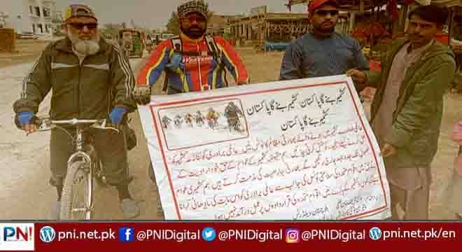 اس موقع پر سائیکلسٹ حاجی نیاز محمد کاکڑ اور گل درانی نے صحافیوں سے بات چیت کرتے ہوئے کہاکہ ہم بلوچستان سے امن کا پیغام لیکر نکلے ہیں اور اپنے کشمیری بھائیوں کے ساتھ انڈیا نے جو ظلم و ستم کررہاہے ہم اس کی مذمت کرتے ہیں اور عالمی برادری سے مطالبہ کرتے ہیں کہ انڈیا کو دہشت گرد قرار دے اورعالمی ادارے کشمیر میں ہونے والے بھارتی مظالم کا نوٹس لیں اور تمام عالمی برادری کو تنازعہ کشمیر کو حل کرنے کے لیے سنجیدہ کوشش کرنی چاہیئے ہم مقبوضہ کشمیر کے عوام کے حق خودارادیت کے حصول تک جدوجہد جاری رکھیں گے