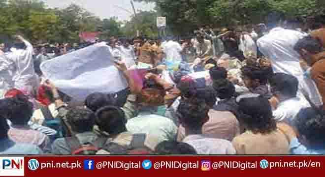 تا ہم احتجاجی ریلی میں شامل میڈیکل کا لجز کے طلبا ء کو روانگی سے توڑی دیر بعد ہی پو لیس ریڈ زون کی جا نب بڑھنے سے روکا تو پولیس اور طلبا ء کے درمیان ایک با ر پھر دھکم پھیل شروع ہو گئی مظا ہرے میں شریک طلبا ء نے الزام عا ئد کیا کہ پو لیس کی جا نب سے ان پر تشدد کیا گیا بعد ازاں بھوک ہڑتالی طلبا ء کی حا لت غیر ہو نے پر انہیں ہسپتال بھی منتقل کر دیا گیا۔۔۔۔۔