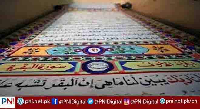 ہاتھ سے لکھے ہوئے دنیا کے سب سے طویل قرآن مجید کی نمائش، لمبائی 41 فٹ، چوڑائی 53 انچ اور 31 صفحات پر مشتمل ہے