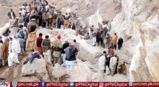 ایبٹ آباد(آئی این پی ) خیبر پختونخوا کے ضلع ایبٹ آباد میں فاسفیٹ کی کان بیٹھ گئی جس کے نتیجے میں ملبے تلے دب کر 2 مزدور جاں بحق ہو گئے۔ ریسکیو ذرائع کے مطابق ایبٹ آباد کے علاقے کالوبانڈی میں افسوسناک واقعہ پیش آیا جہاں فاسفیٹ کی ایک کان بیٹھ گئی جس کے ملبے تلے دب کر دو مزدور جاں بحق ہو گئے۔ ریسکیو ذرائع نے بتایا کہ کان میں موجود مزید مزدوروں کی تلاش اور ملبہ ہٹانے کے لئے آپریشن جاری ہے۔ دوسری جانب ایبٹ آباد پولیس کے مطابق فاسفیٹ کی کان غیر قانونی تھی۔
