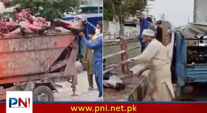 پشاور انتظامیہ نے مضر صحت گوشت نہر میں پھینک دیا، قصائیوں نےپھر نکال لیا