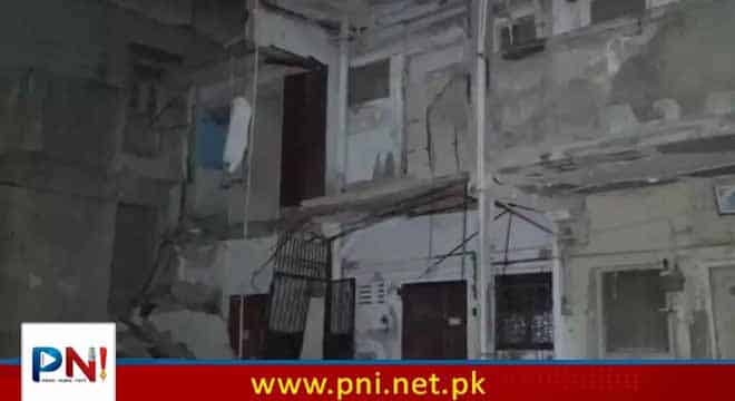کراچی (پی این آئی)کراچی کے علاقے گلبرگ چورنگی پر عمارت کا اگلا حصہ گر گیا۔