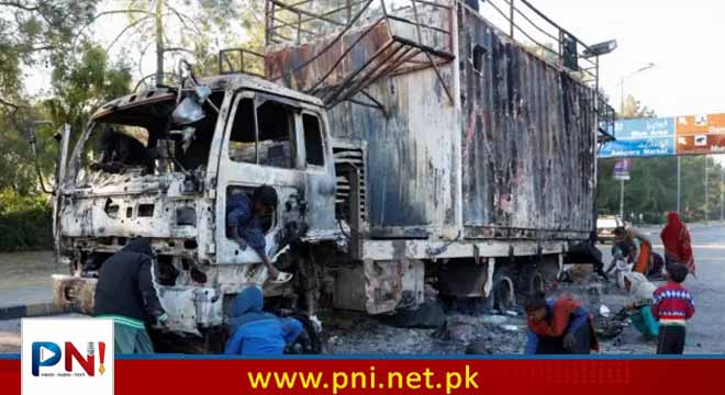 تحریک انصاف کے احتجاج کے دوران گزشتہ روز بشریٰ بی بی اورعلی گنڈاپور کا مرکزی کنٹینر گزشتہ رات نذر آتش کردیا گیا تھا جو اب اسلام آباد کے بلیو ایریا میں لوگوں کی توجہ کا مزکز بنا ہوا ہے۔ جلے ہوئے کنٹینر کو ہٹانے کے لیے انتظامیہ اقدامات کررہی ہے تاہم لوگ جل کر خاکستر ہونے والے کنٹینر کے ساتھ سیلفیاں لے رہے ہیں اور ویڈیوز بھی بنا رہے ہیں۔ واضح رہے کہ تحریک انصاف کا احتجاجی مارچ بشریٰ بی بی اور وزیراعلیٰ کے پی علی امین گنڈاپور کی قیادت میں کل اسلام آباد میں داخل ہوا تھا، دونوں رہنماؤں نے اسی کنٹینر پر سوار ہوکر کئی مرتبہ خطاب بھی کیا تھا تاہم حکومتی کریک ڈاؤن کے بعد پی ٹی آئی نے احتجاج ختم کرنے کا اعلان کردیا۔