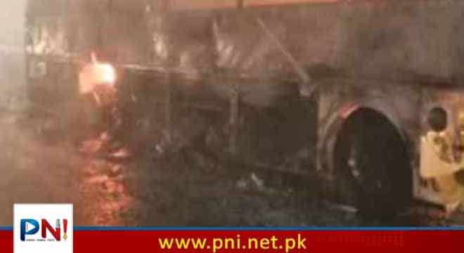 راولپنڈی(پی این آئی)کلرکہار کے قریب بس میں آگ بھڑک اٹھی جس کی وجہ سے بس مکمل طور پر جل کر خاکستر ہوگئی۔
