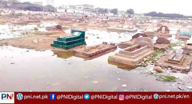 قبرستان میں ڈرینج کا گندہ پانی جمع ہونے کی وجہ سے قبروں کی بے حرمتی ہورہی ہے علاقہ مکینوں کی شکایت کے باوجود قبرستان سے نکاسی کا عمل شروع نہیں ہوسکا ہے قبرستان گندے پانی کے جمع ہونے کی وجہ سے تالاب کا منظر پیش کررہا ہے علاقہ مکینوں کے مطابق شکایت پر سکھر انتظامیہ نے چند روز قبل قبرستان سے نکاسی ا?پ کیلئے جنریٹر اور پمپ لگا کر کافی حد تک پانی نکال کر قبروں کو بے حرمتی سے بچا لیا تھا لیکن افسوس جنریٹر اور پمپ خراب ہونے کی وجہ سے حالت زار دوبارہ خراب ہو گئی ایسا لگتا ہے انتظامیہ جان بوجھ کر قبرستان کو تباہ کرنے پر تلی ہوئی ہے تاکہ قبضہ مافیا قبریں مسمار کرکے پلاٹنگ شروع کرسکیں واضع رہے کہ پیر مراد شاہ قبرستان کے اطراف میں قبضہ مافیا مکمل طور پر سرگرم نظر آرہی ہے اور غیر قانونی قبضوں کا سلسلہ جاری ہے، علاقہ مکینوں نے بالا حکام سے نوٹس لیکر پیر مراد شاہ قبرستان کی حالت زار کو بہتر بنانے سمیت قبضے ختم کرانے کا پرزور مطالبہ کیا ہے۔