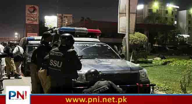پولیس نے بتایا کہ فائرنگ کی آواز سن کر گشت پر مامور پولیس اہلکار بھی فوری پہنچ گئے اور ملزمان کی موٹر سائیکل کو ٹکر مار دی جس سے 2 ملزمان زخمی ہوگئے جبکہ ایک ڈاکو پولیس پر فائرنگ کرتا ہوا قریبی شاپنگ مال میں چلا گیا ۔ موقع پر موجود شہریوں نے بھی ڈاکوؤں کو تشدد کا نشانہ بنایا۔ پولیس کے ساتھ فائرنگ کے تبادلے میں زخمی ہونے والا ایک ڈاکو بھی دم توڑ گیا ۔ بلڈر کے عملے کا کہنا ہے کہ کیش دوسرے آفس منتقل کیا جارہا تھا کہ ڈاکوؤں نے رقم چھیننے کی کوشش کی، جاں بحق ہونے والا سکیورٹی گارڈ کافی عرصے سے ان کے ساتھ کام کر رہا تھا۔پولیس حکام کا کہنا ہے کہ ملزمان اس سے قبل بھی کئی وارداتیں کرچکے ہیں، انہوں نے گلستان جوہر میں بھی شہری کو ڈکیتی کے دوران قتل کردیا تھا۔