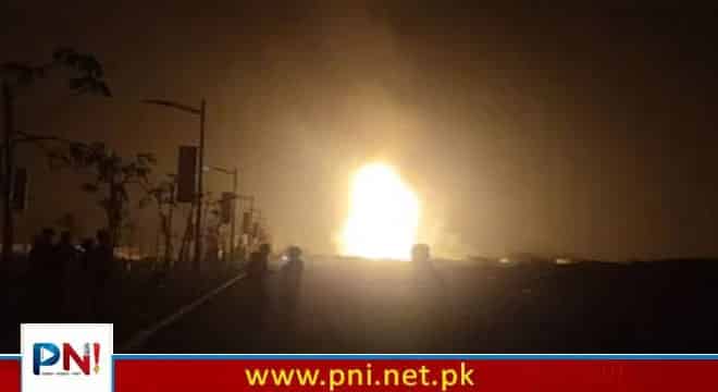 کراچی کے علاقے کورنگی کریک میں نجی ہاؤسنگ سوسائٹی میں کام کے دوران گیس لائن میں آگ لگ گئی۔