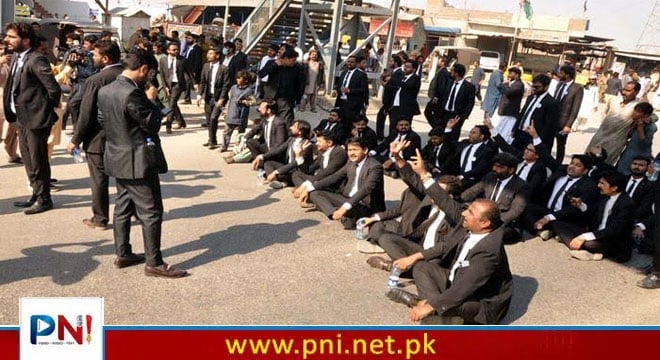 صدر کراچی بار کونسل عامر نواز وڑائچ کی قیادت میں وکلا نے آج صبح سے سکھر اور خیرپور کے درمیان ببرلو بائی پاس پر دھرنا دے رکھا ہے جبکہ سندھ کے دیگر شہروں سے بھی وکلا دھرنے میں شریک ہوئے ۔ دھرنے کی وجہ سے بائی پاس پر ٹریفک معطل ہوگئی اور گاڑیوں کی لمبی قطاریں لگی ہیں جبکہ ببر لو بائی پاس بند ہونےسے 3 صوبوں کازمینی رابطہ منقطع ہوگیا ہے۔اس موقع پر گفتگو کرتے ہوئے صدر کراچی بار کونسل عامر وڑائچ نے کہا کہ کراچی سے سکھر تک ہر ضلع میں ہمارا بھرپور استقبال کیا گیا ہے، 4 مطالبات کےلیے احتجاجی دھرنا دیا ہے، پہلی ترجیح متنازع کینالز کا خاتمہ ہے۔