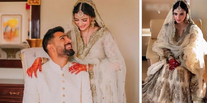 اسلام آباد(پی این آئی)پاکستان کے فاسٹ بولر حارث رؤف گزشتہ روز اپنی کلاس فیلو مزنا مسعود ملک سے رشتہ ازدواج میں منسلک ہو گئے۔نجی ٹی وی جیو نیوز کے مطابق حارث رؤف اور ان کی اہلیہ مزنا مسعود نے نکاح کے روز سفید رنگ کے شیڈز کے ساتھ تیار عروسی ملبوسات کا انتخاب کیا۔نکاح کے روز مزنا نے ڈیزائنر حسین ریحار کی تیار کردہ خوبصورت آئیوری رنگ کی آرگنزا کی پشواس کا انتخاب کیا جو سنہری رنگ کے ہاتھ کے خوبصورت اور نفیس کام کے ساتھ تیار کی گئی تھی۔