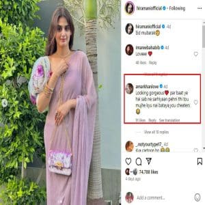 ایسے میں انہوں نے اداکارہ حرا مانی کی عید پر شیئر کی گئی ایک تصویر کے کمنٹ میں تبصرہ کرتے ہوئے جہاں ان کی خوبصورتی کی تعریف کی وہیں انہوں نے اداکارہ کو دھوکے باز کہتے ہوئے اپنا شکوہ بھی بیان کیا کہ کسی نے انہیں آگاہ نہیں کیا اور سب نے ایک ساتھ ساڑھی پہن لی۔امر خان کے شکوے پر حرا مانی نے ان سے وعدہ کیا کہ اگلے سال عید پر ایک ہی رنگ کا جوڑا بنوائیں گے۔۔۔۔
