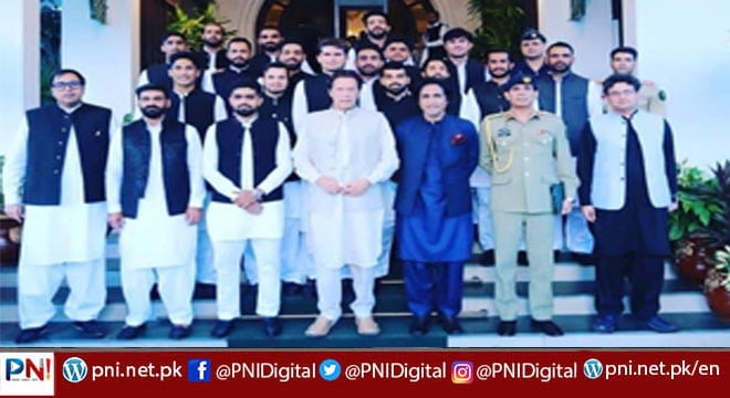 راجہ نے بھی شرکت کی۔ملاقات کرنے والوں میں بابر اعظم، شاداب خان، آصف علی، اعظم خان، حارث رف، حسن علی، عماد وسیم، خوشدل شاہ، محمد حفیظ، محمد حسنین، محمد نواز، محمد رضوان، محمد وسیم، شاہین شاہ آفریدی، صہیب مقصود شامل ہیں۔ملاقات سے قبل جب قومی کھلاڑی وزیراعظم ہاوس پہنچے تو کھلاڑیوں نے سفید قمیض شلوار اور گہرے نیلے رنگ کی ویسٹ کوٹ زیب تن کر رکھی تھی۔ذرائع کے مطابق ملاقات کے دوران پاکستان میں ڈومیسٹک سسٹم سمیت کرکٹ کے امور پر بات چیت ہوئی۔وزیر اعظم نے ملاقات کے دوران کھلاڑیوں کو ٹی 20 ورلڈ کپ سے متعلق ٹپس دیں اور کھلاڑیوں کو بے خوف ہوکر ورلڈ کپ کھیلنے کا مشورہ دیا۔وزیراعظم نے ہدایت دیتے ہوئے کہا کہ نیوزی لینڈ انگلینڈ کے دورہ