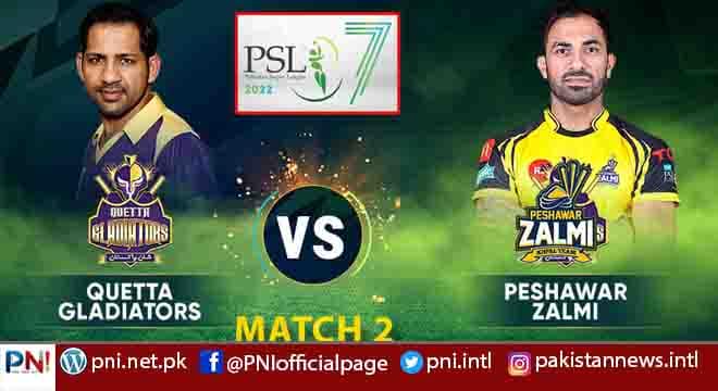 کراچی (پی این آئی) پاکستان سپر لیگ(پی ایس ایل) کے 7ویں ایڈیشن کے دوسرے میچ میں پشاور زلمی نے کوئٹہ گلیڈی ایٹرز کو 5 وکٹوں سے شکست دیدی ہے۔ کراچی کے نیشنل سٹیڈیم میں کھیلے جا رہے ایونٹ کے دوسرے میچ میں پشاور زلمی نے ٹاس جیت کر کوئٹہ گلیڈی ایٹرز کو بیٹنگ کی دعوت دی۔ احسن علی اور پی ایس ایل میں پہلا میچ کھیلنے والے وِل سمیڈ نے پراعتماد انداز میں اننگز کا آغاز کیا اور شاندار بیٹنگ کرتے ہوئے پاور پلے میں ہی ٹیم کی نصف سنچری مکمل کرا دی۔