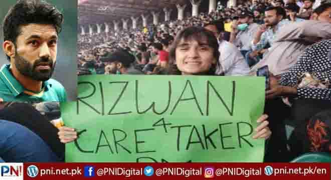 لاہور(مانیٹرنگ ڈیسک)قومی ٹیم کے وکٹ کیپر بیٹر محمد رضوان کی مداح نے انہیں پاکستان کا نگران وزیر اعظم بنانے کا مطالبہ کردیا۔گزشتہ روز پاکستان اور آسٹریلیا کے درمیان کھیلے گئے واحد ٹی ٹوئنٹی میچ کے دوران ایک خاتون تماشائی نے محمد رضوان کو ملک کا نگران وزیر اعظم بنانے کی درخواست کی۔ٹوئٹر پر خاتون صارف کی جانب سے پلے کارڈ کی تصویر شیئر کی گئی جس میں لکھا تھا کہ ’رضوان کو نگران وزیر اعظم بنایا جائے‘۔خاتون صارف نے پلے کارڈ کی تصویر شیئر کرتے ہوئے اپنی ٹوئٹ میں یہ بھی لکھا کہ رضوان ہمارا بہترین خیال رکھیں گے۔