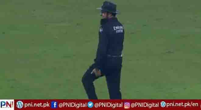 علیم ڈار نے اپنے تئیں گیند سے بچنے کی بھرپور کوشش کی لیکن وہ کامیاب نہ ہوپائے اور گیند ان کی ٹانگ سے “جاٹکرائی۔” اگرچہ گیند کی رفتار اتنی زیادہ نہیں تھی لیکن علیم ڈار کافی دیر تک اپنی ٹانگ سہلاتے رہے۔