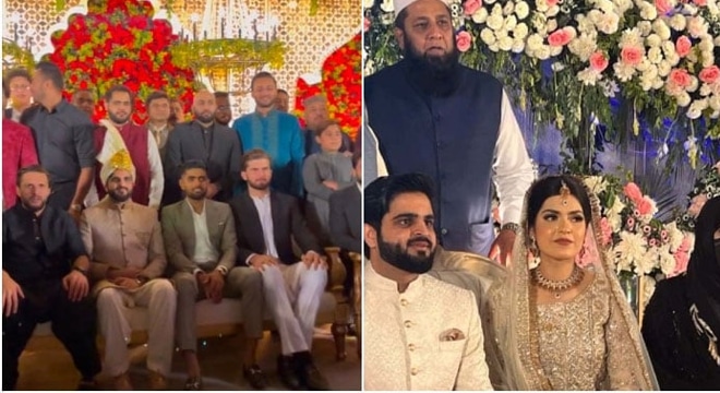 اسلام آباد (پی این آئی)قومی کرکٹ ٹیم کے سابق کپتان انضمام الحق کی صاحبزادی امیمہ کی شادی کی تقریب لاہور میں منعقد ہوئی۔جیو نیو زکے مطابق تقریب میں قومی کرکٹ ٹیم کے کپتان بابراعظم، شاہین آفریدی،امام الحق، شعیب اختر،شاہدآفریدی ، وہاب ریاض، مشتاق احمد سمیت موجودہ و سابق کرکٹ اسٹارز نے شرکت کی۔اس کے علاوہ وقار یونس اور محمد حفیظ نے اپنی فیملیز کے ہمراہ شادی میں شرکت کی۔تقریب میں قومی کرکٹرز کو دیکھ کر وہاں موجود مہمانوں نے