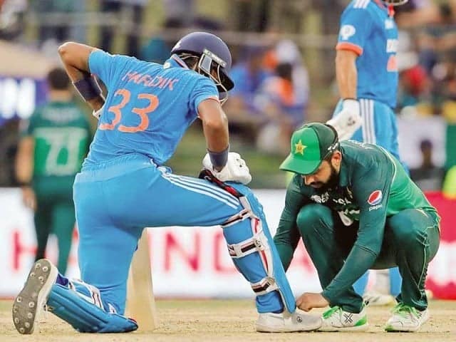 لاہور(پی این آئی) بھارت سے میچ میں شاداب خان نے اسپورٹسمین اسپرٹ کی مثال قائم کردی۔ ابتدائی 4وکٹیں جلد گرنے کے بعد ایشان کشن اور ہردیک پانڈیا اسپنرز کیخلاف جارحانہ انداز اپناتے ہوئے ٹیم کو بہتر پوزیشن میں لا رہے تھے، ایسے میں ایشان کو جوتے کا تسمہ باندھنے کی ضرورت محسوس ہوئی مگر گلوز حائل ہو گئے، شاداب خان نے ان کی پریشانی کو سمجھا اور مدد کیلیے آگئے۔