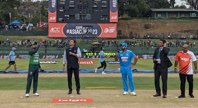 اسلام آباد (پی این آئی )ایشیا کپ سپر فور مرحلے میں پاکستان کا بھارت کیخلاف ٹاس جیت کر فیلڈنگ کا فیصلہ کیا ہے ۔ تفصیلات کے مطابق پاکستان اور بھارت کے درمیان سری لنکا میں کھیلے جانے والے میچ میں قومی ٹیم نے ٹاس جیت پہلے باولنگ کا فیصلہ کرلیا۔ ایشیا کپ کے دوسرے مرحلے میں پاکستان اور بھارت کی ٹیمیں آج کولمبو کے آر پریمیداسا ٹکرانے جارہی ہیں۔ پاکستان کی جانب سے ٹاس جیت کر پہلے بھارت کو بیٹنگ کی دعوت دی گئی ہے۔