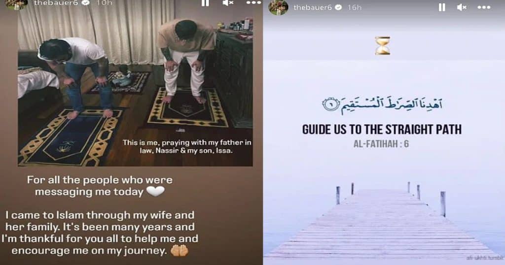 سماجی رابطے کی سائٹ انسٹاگرام پر سعودی کلب کے 28 سالہ دفاعی کھلاڑی رابرٹ باؤر نے اپنی تصویر شیئر کرتے ہوئے مداحوں کو آگاہ کیا، جس میں وہ نماز پڑھتے دکھائی دے رہے ہیں۔رابرت بائور نے اپنے پیغام میں اس خوش گوار تبدیلی کا ذکر کرتے ہوئے لکھا کہ ’اپنی اہلیہ اور اس کے خاندان کے ہمراہ دائرہ اسلام میں داخل ہوگیا ہوں، آپ سب کا شکر گزار ہوں جنہوں نے میری مدد اور حوصلہ افزائی کی‘۔ رابرٹ باؤر سعودی پروفیشنل لیگ میں الطائی فٹ بال کلب کی نمائندگی کررہے ہیں، وہ کلب کے ساتھ ایک سالہ معاہدے کے بعد شہ سرخیوں میں آئے تھے۔ واضح رہے کہ رواں سال کے آغاز میں معروف ڈبلیو ڈبلیو ای کے آنجہانی ریسلر اوماگا کے بیٹے زیلا فاتو نے بھی اسلام قبول کیا تھا۔