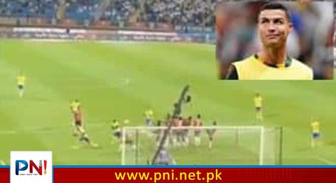 اسلام آباد (پی این آئی) سعودی عرب میں فٹبال میچ کے دوران النصر کلب سے کھیلنے والے کرسٹیانو رونالڈو کی فری ہٹ نے کیمرہ مین کو دن میں تارے دکھا دیے۔ ہفتہ کو سعودی عرب کے کنگ عبداللہ اسپورٹس سٹی اسٹیڈیم میں النصر اور الرعد کلب کے میچ میں پرتگال کے عالمی شہرت یافتہ اسٹار فٹبالر کرسٹیانو رونالڈو نے اپنی فری کک سے کیمرہ مین کو ناک آؤٹ کر ڈالا۔