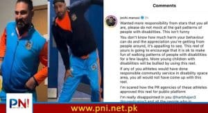 ابتداً بھارت کے پیرا بیڈمنٹن اسٹار مناسی جوشی نے اپنے غم و غصے کا اظہار کرتے ہوئے بھارتی کرکٹرز کے اس اقدام کو ’بے حسی‘ قرار دیا اور لکھا کہ آپ جیسے کھلاڑیوں سے ذمے دارانہ رویے کی توقع تھی، یہ کوئی مذاق نہیں ہے، معذور افراد کی توہین نہ کریں، آپ کی اس ریل سے لوگوں کی حوصلہ افزائی ہو گی کہ معذور افراد کا مذاق اڑانے میں کوئی کمی باقی نہیں رہے گی، اس ریل کا استعمال کرتے ہوئے کئی معذور بچوں اور نوجوانوں کو تنگ کیا جائے گا۔۔۔۔