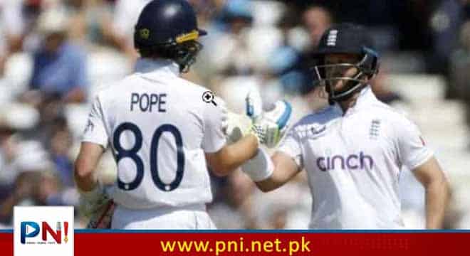 تفصیلات کے مطابق دنیا بھر کے شائقین کرکٹ کو جمعرات کے روز انگلینڈ اور ویسٹ انڈیز کے درمیان جاری ٹیسٹ سیریز کے دوسرے میچ کے پہلے روز حیرت انگیز مناظر دیکھنے کو ملے۔ویسٹ انڈیز کے خلاف سیریز کے دوسرے ٹیسٹ میں انگلش بلے بازوں نے ٹی ٹوئنٹی جیسا انداز اختیار کرتے ہوئے ابتدائی اوورز میں ویسٹ انڈین گیند بازوں کی خوب دھلائی کر ڈالی۔